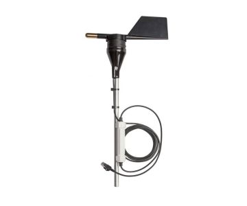 Esta veleta está reforzada y tiene un saliente por goteo que evita la formación de hielo. Sus rodamientos esféricos blindados de acero inoxidable y su carcasa de disipación de estática proporcionan una larga vida útil del sensor. El sensor calcula un promedio del valor del vector de la dirección del viento, proporcionando datos directamente en grados.