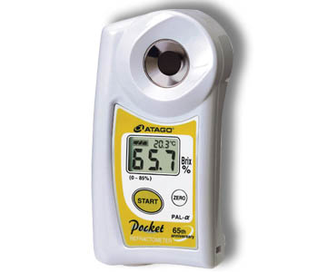 El refractómetro digital “Pocket” PAL-Alpha, realiza mediciones en un amplio rango de 0.0 a 85.0 º brix, pudiendo cumplir funciones del PAL-1 y el PAL-2 en un solo equipo. Su capacidad de medición en bajo rango (menor a 45 brix) le permiten realizar mediciones en casi cualquier tipo de fruta, alimento, bebida, sopas y su capacidad de medición en alto rango (mayor a 45 brix) le permite ser usado en dulces, mermeladas, gelatinas, mieles, jugos concentrados y confitura. Está diseñado para medir una gran variedad de muestras incluso muestras en proceso de cocción. Su diseño resistente permite lavarlo debajo del grifo de agua.